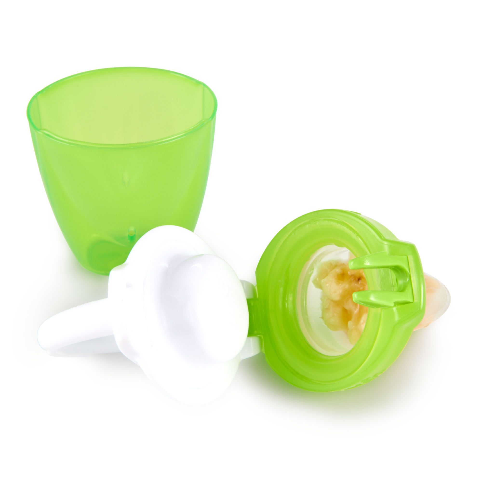 Ouvrez l’anneau de dentition alimentaire et insérez un morceau de fruit frais (fraise, banane), de légume cuit ou même un glaçon de purée. Refermez bien et donnez-le à bébé. Surveillez toujours bébé pendant qu’il l’utilise. Après chaque utilisation, démontez l’anneau et lavez toutes les parties à l’eau chaude savonneuse ou au lave-vaisselle.
