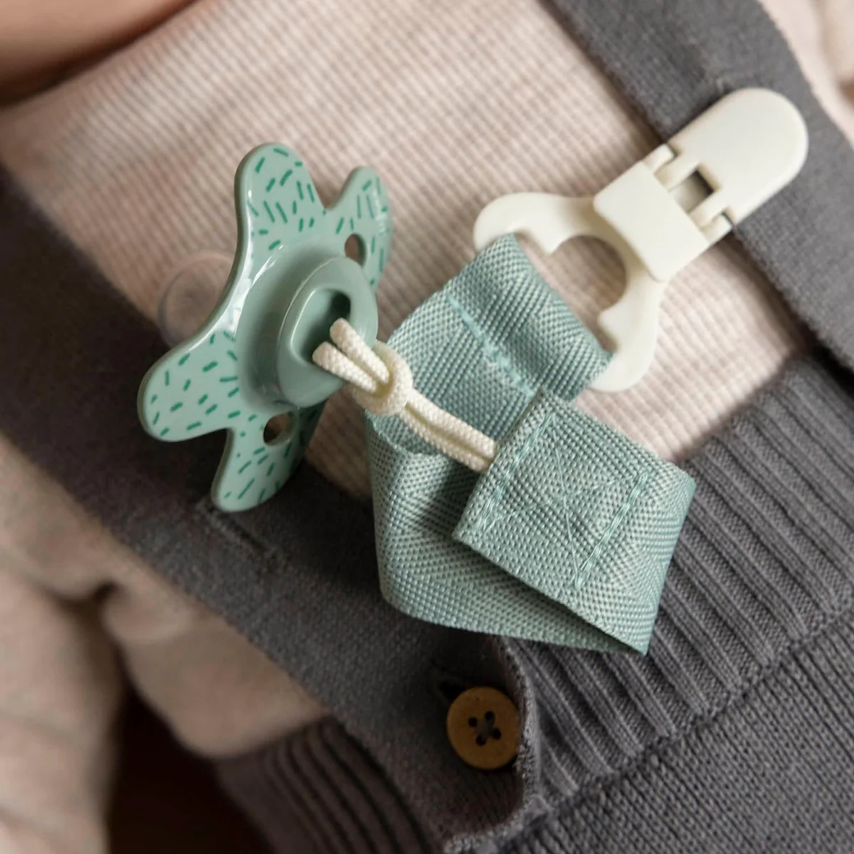 - Matériaux : Tissu durable et clip sécurisé, sans BPA ni BPS.