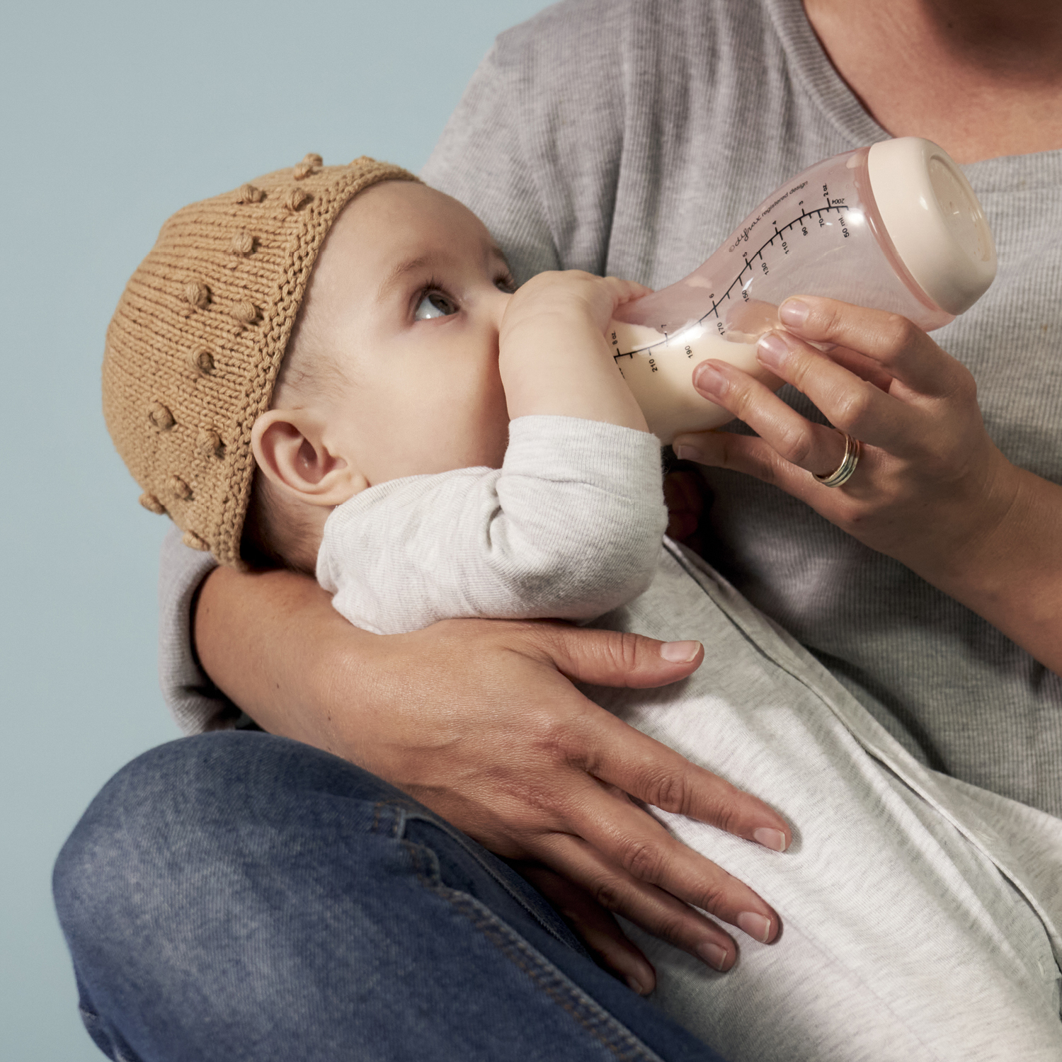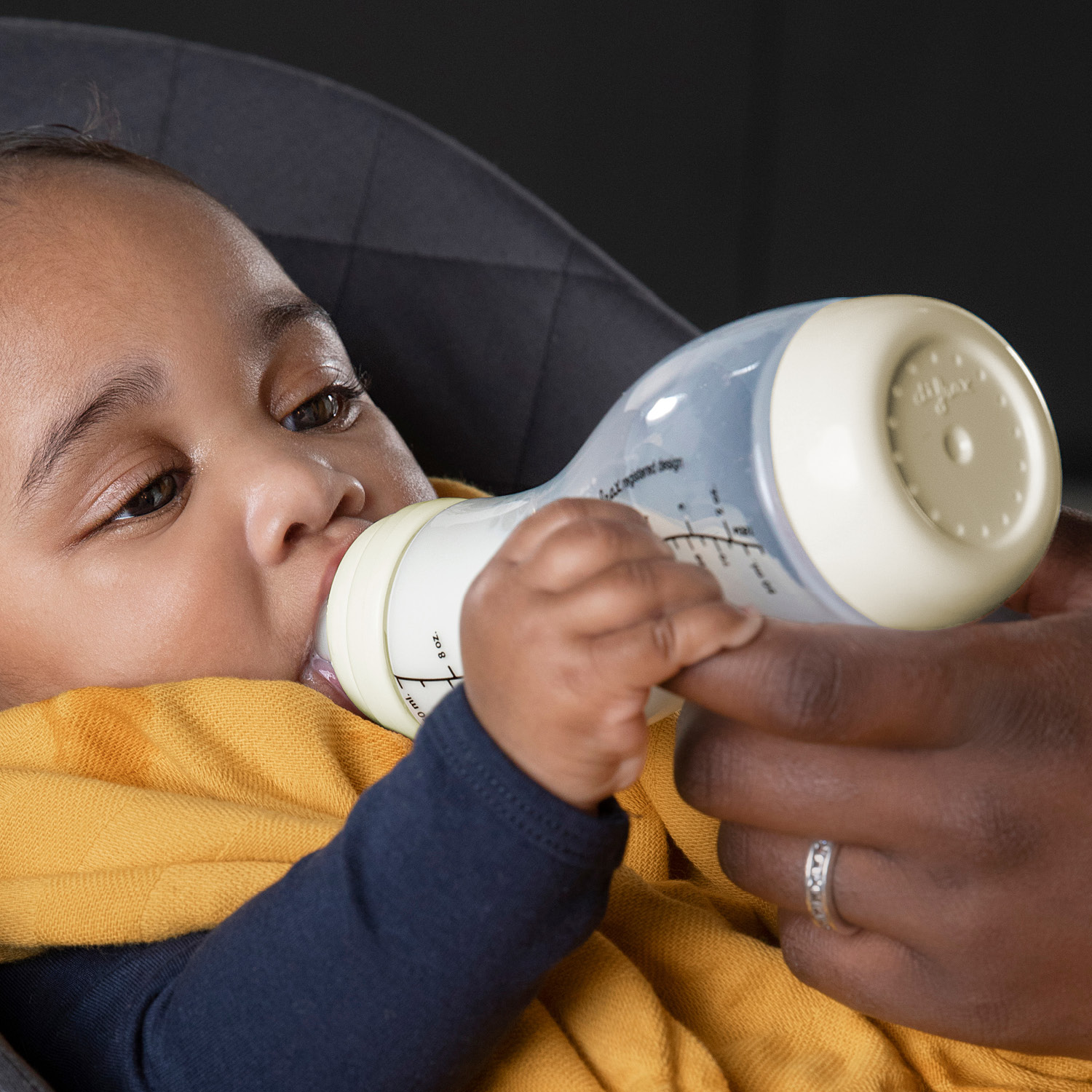 L’apport en air constant par le fond du biberon S anti-colique prévient l’effet sous-vide. La forme en S permet à la nourriture de continuer à couler vers la tétine, même si le biberon est tenu à l’horizontale. Ainsi, votre enfant n’a pas à basculer la tête vers l’arrière et peut boire dans une position ergonomique, sans avoir à interompre le repas. Les biberons Natural, avec leur tétine étroite, sont en règle générale les plus facilement acceptées.
