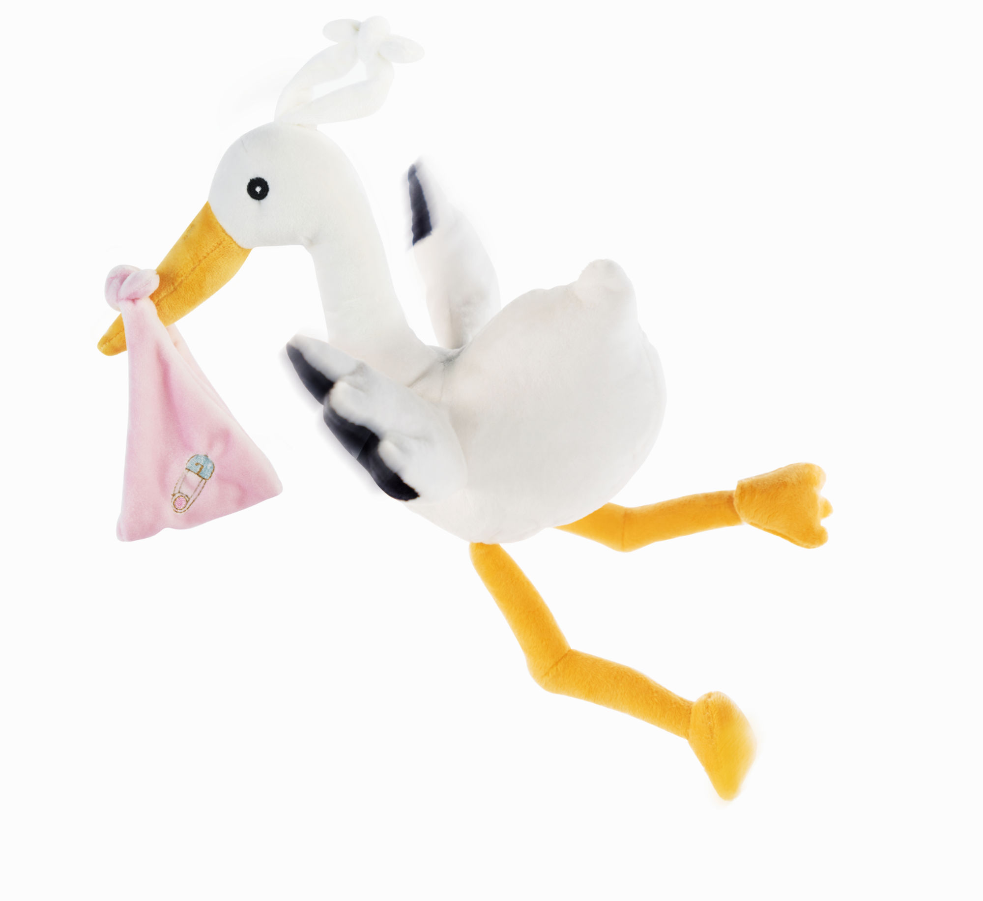 - Symbole de bienvenue : La cigogne est un porte-bonheur traditionnel qui représente l’arrivée des bébés. Offrir cette peluche, c’est souhaiter la bienvenue de la plus douce des manières.