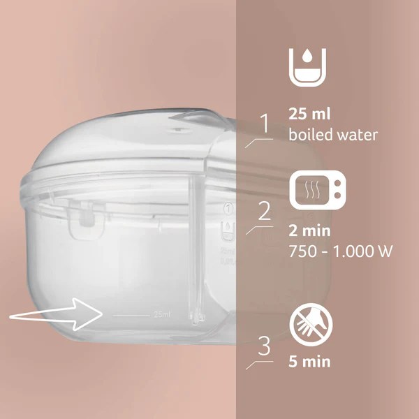 Avant la première utilisation et après chaque repas, lavez soigneusement la tétine dynamique allaitement mixte. Rincez-la abondamment. Stérilisez-la régulièrement selon les recommandations du fabricant (eau bouillante, stérilisateur vapeur ou UV). Vérifiez toujours l’état de la tétine avant chaque utilisation : si elle est abîmée, fendue ou collante, remplacez-la immédiatement. Des tétines avec différents débits sont disponibles séparément. Elles s’adaptent à la force de succion et à l’âge de votre bébé.