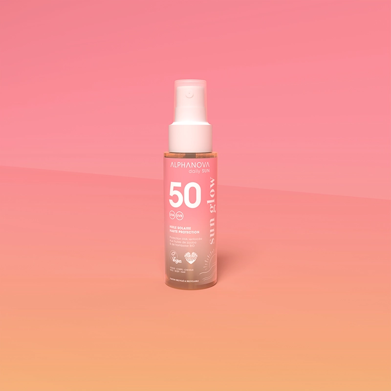 Pourquoi choisir l’huile solaire corps & cheveux SPF50 Alphanova Sun ?