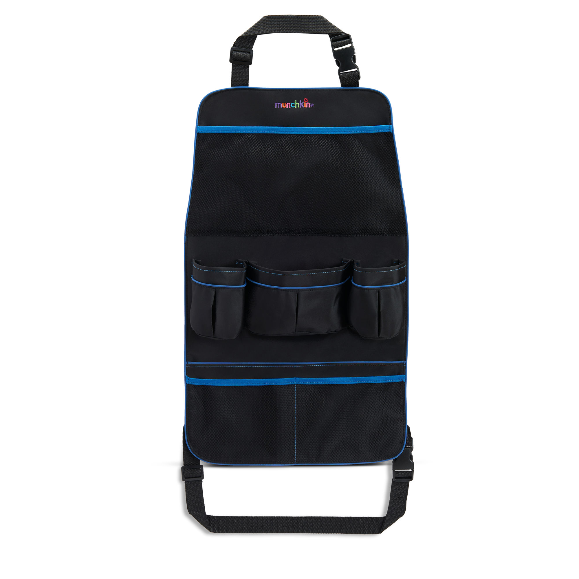 Fixez l’organisateur à l’arrière du siège avant à l’aide des sangles. Remplissez les poches avec les jouets, collations et autres nécessités de votre enfant. Pour un nettoyage rapide, essuyez-le avec un chiffon humide.