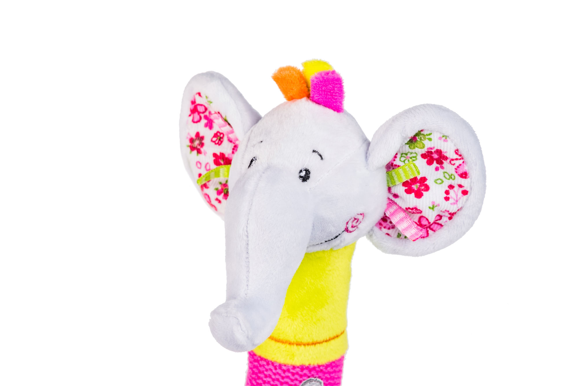 Le jouet éléphant est léger et facile à transporter. Vous l’emportez partout. Attachez-le à la poussette, au siège auto ou au berceau grâce à son anneau pratique. Il garantit des moments de jeu et d’éveil, même en déplacement. De plus, en manipulant le jouet et en activant le couineur, votre bébé développe sa coordination œil-main et ses muscles.