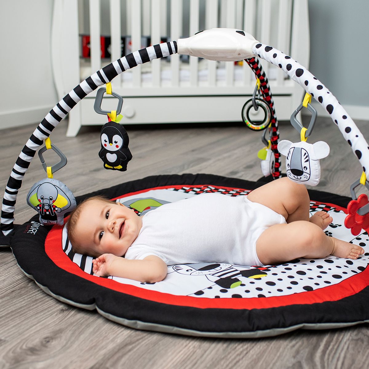 Ce tapis d’éveil bébé multifonction est un véritable centre d’activités pour votre enfant. Il propose une multitude de stimuli essentiels à son développement :